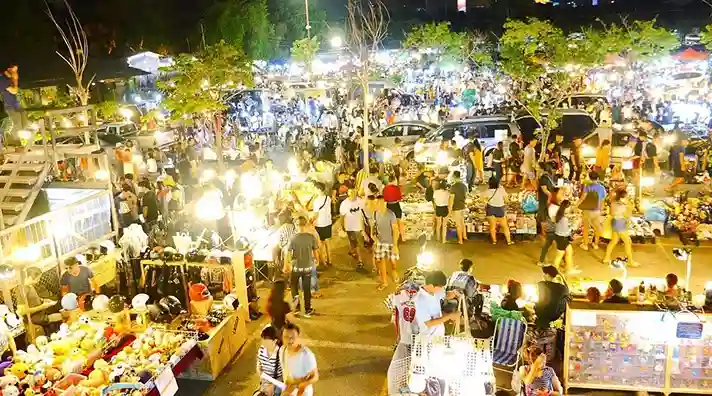 Meski Chatuchak lebih dikenal dengan pasar weekend, versi malamnya menjadi pusat gaya hidup anak muda Bangkok. Produk vintage, secondhand fashion, dan kafe kekinian menjadikan tempat ini populer.